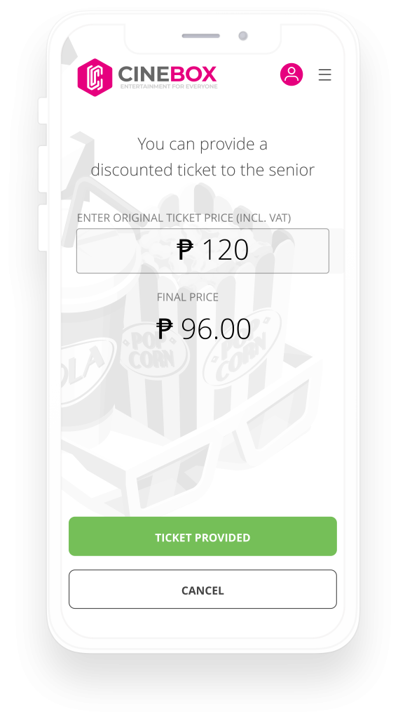 When the Senior has received the free ticket, we confirm the transaction by pressing the button “ticket provided”.
